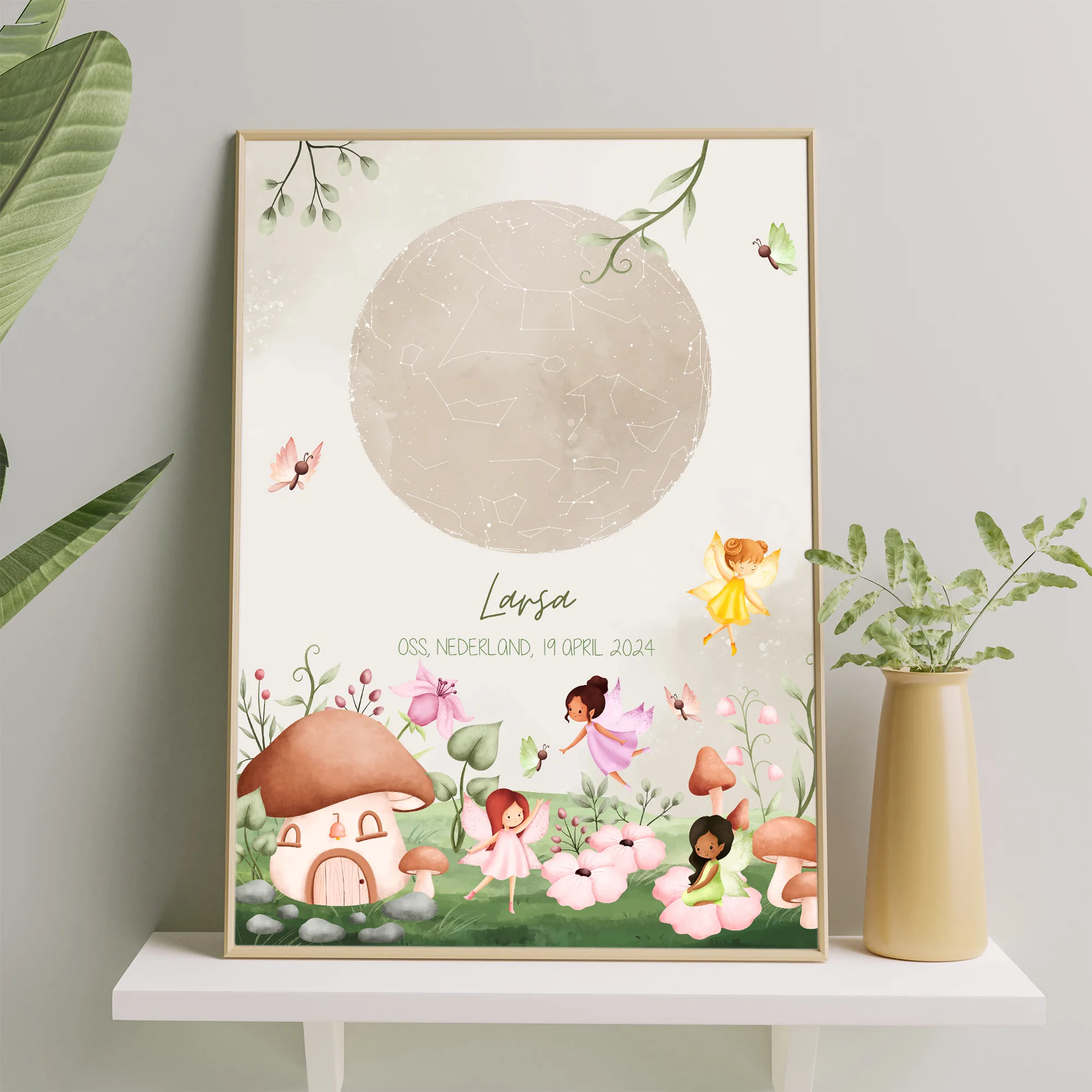 Creëer een magische herinnering voor je kind met een gepersonaliseerde sterrenhemel poster! Deze unieke posters brengen de nacht waarin je kindje werd geboren tot leven, met een gedetailleerde sterrenhemel zoals die op dat moment te zien was. Kies uit diverse dromerige thema’s die perfect passen bij elke kinderkamer: van sprookjesachtige elfjes en zeemeerminnen tot koninklijke prinsessen, en schattige bos-, jungle- en boerderijdieren.